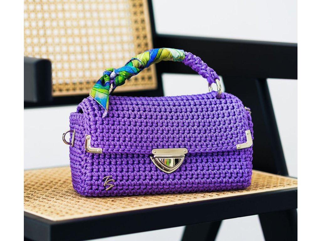 Elegantná crossbody kabelka s luxusným nádychom vyrobená z polyesterovej priadze s jemným leskom, s doplnkami vo farbe striebra a ozdobnou stuhou. So všitou podšívkou s vnútorným vreckom. Kabelka je vystužená, pevne drží tvar. Stuhu možno použiť aj ako krátky popruh na kabelku.