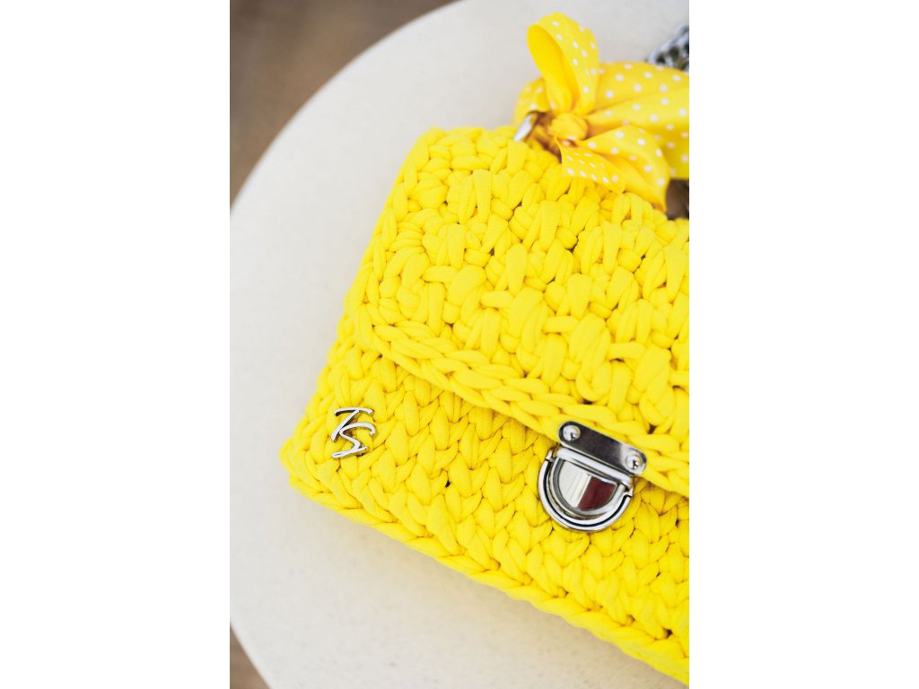 Háčkovaná crossbody kabelka sviežych farieb z bavlnenej priadze a kovovými komponentmi
