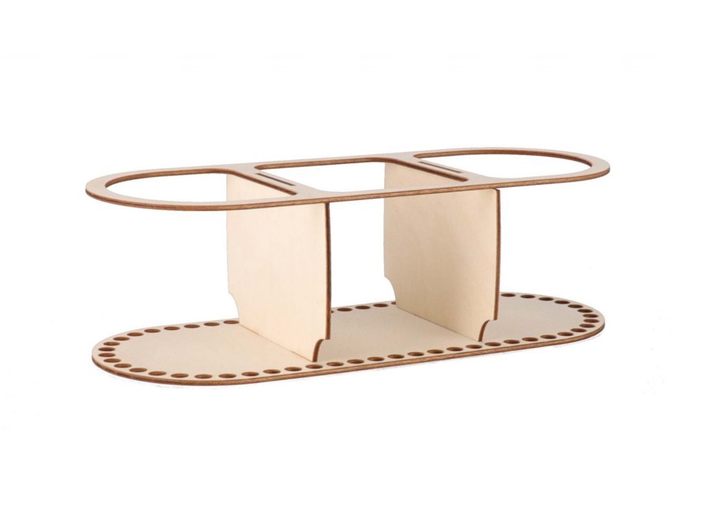 Drevená konštrukcia z brezovej preglejky je vhodná na výrobu háčkovaného organizéra zo špagátových a šnúrkových priadzí.