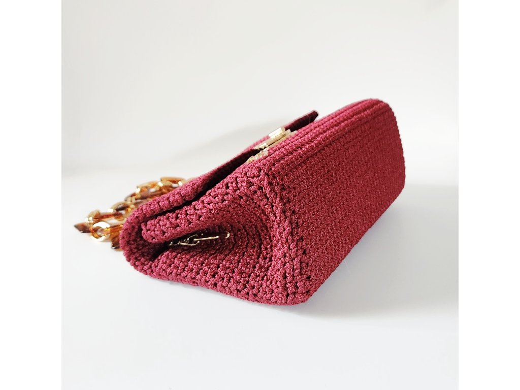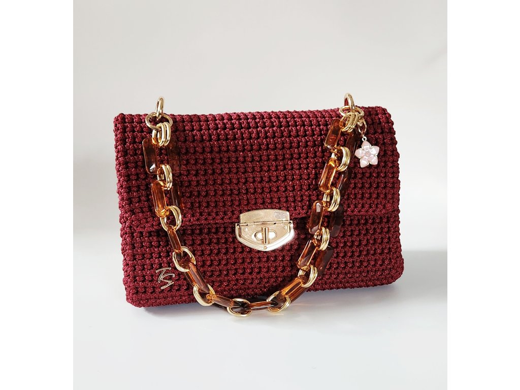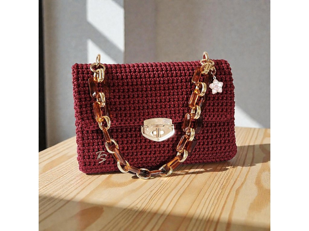 Kabelka Brenda je dokonalou kombináciou štýlu, elegancie a praktickosti. Ručne háčkovaný povrch v odtieni bordovej jej dodáva jedinečný charakter a zaujímavú textúru, ktorá pritiahne pozornosť na prvý pohľad.