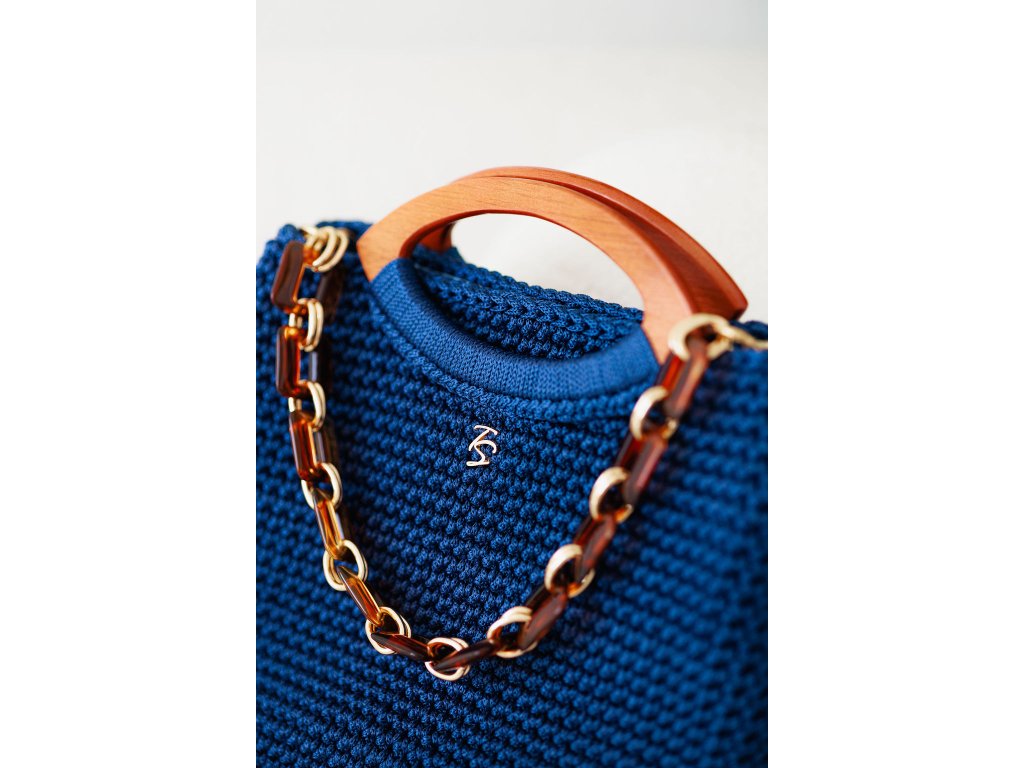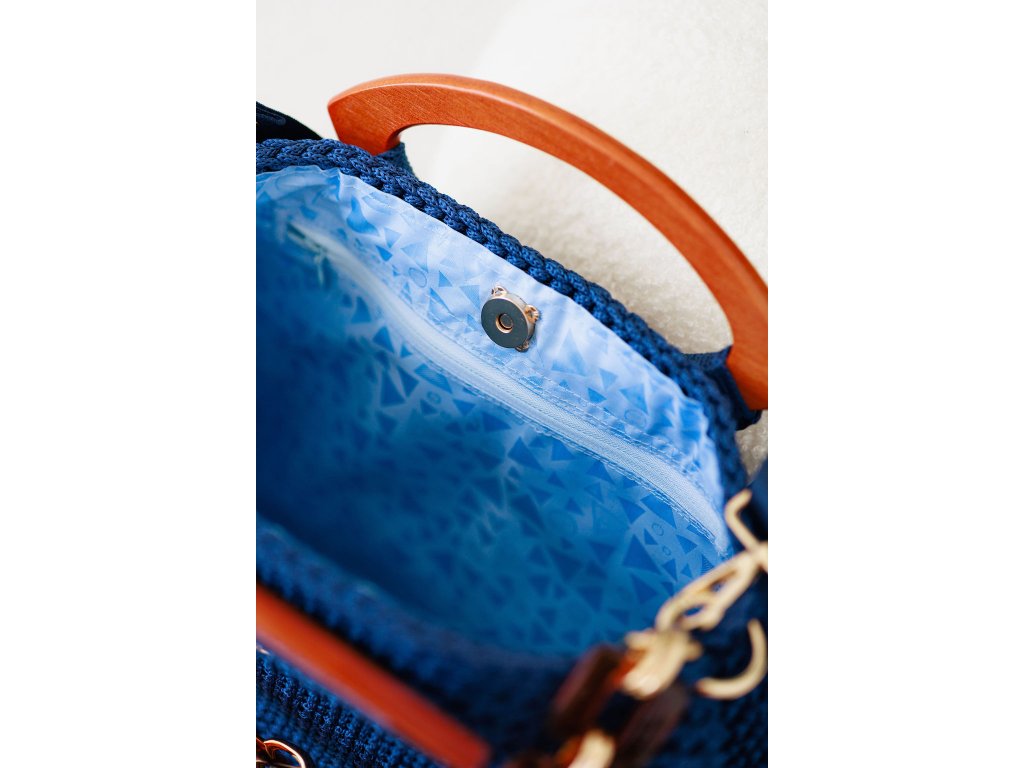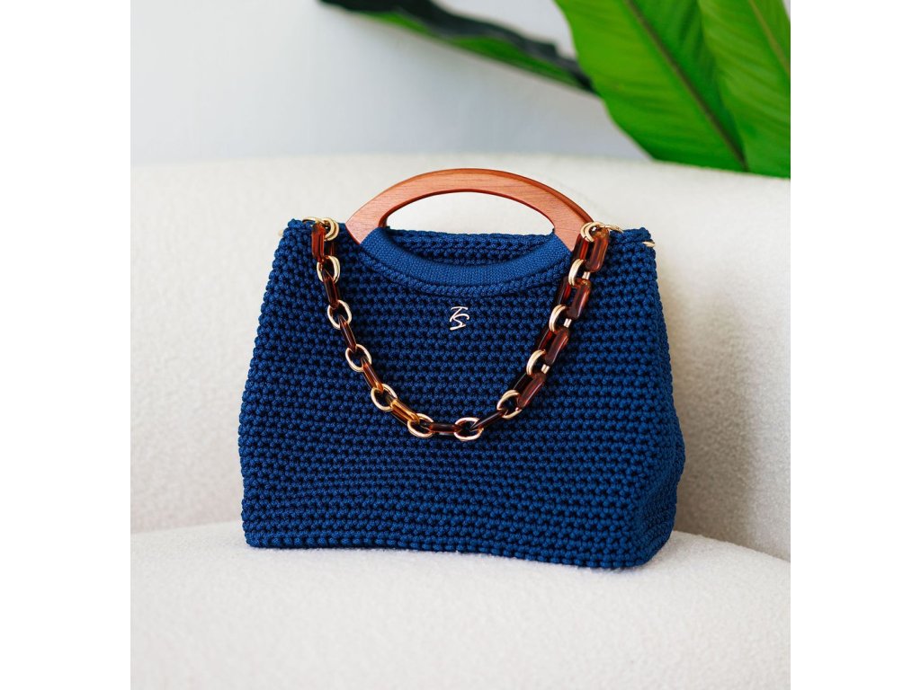 Táto nádherná elegantná kabelka je ideálnym spojením kvalitných materiálov a moderného dizajnu. Vyrobená z kvalitnej polyesterovej priadze s jemným leskom, pôsobí sofistikovane a zároveň nadčasovo. Drevené rúčky dodávajú kabelke jedinečný vzhľad a príjemný dotyk prírody.