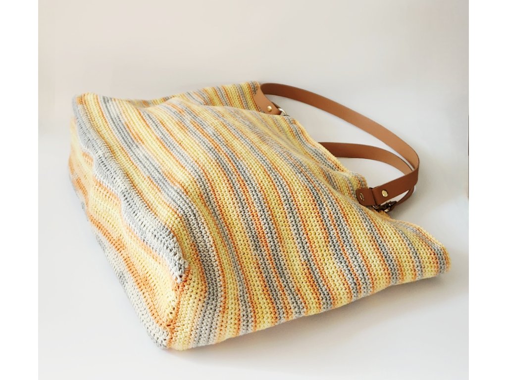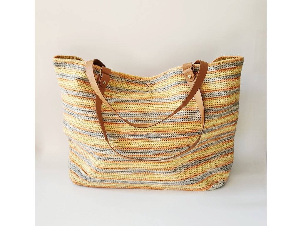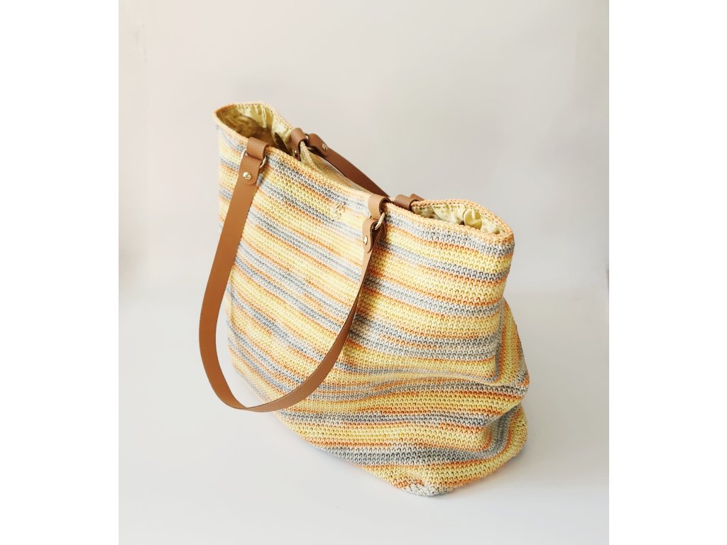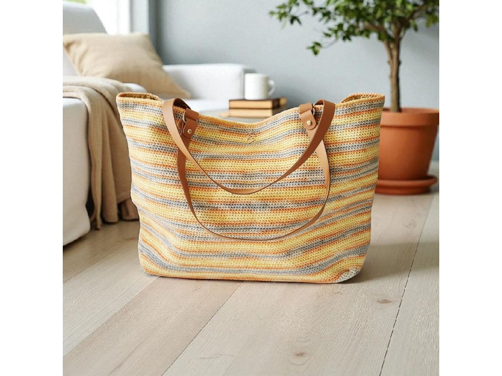 Táto štýlová háčkovaná taška v jedinečnom farebnom mixe je ideálnym doplnkom pre milovníkov módy. Je vybavená vnútornou podšívkou a všitým vreckom, ktoré poskytuje praktické úložné priestory pre vaše cennosti. Vďaka koženým ramenným popruhom s dĺžkou 55 cm je taška pohodlná na nosenie cez rameno. Je priestranná a ľahká, čo z nej robí dokonalého spoločníka na každodenné nosenie. Táto taška kombinuje funkčnosť a štýl, čím zaručuje, že budete vždy v centre pozornosti.