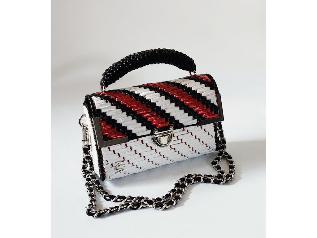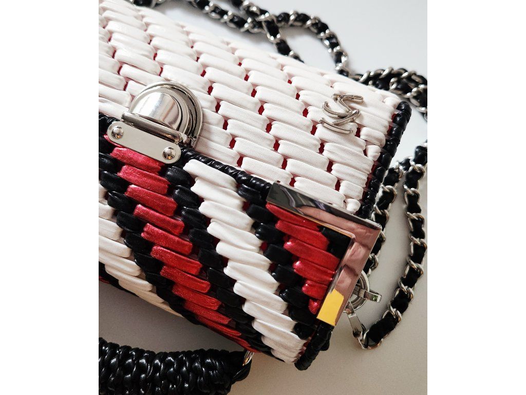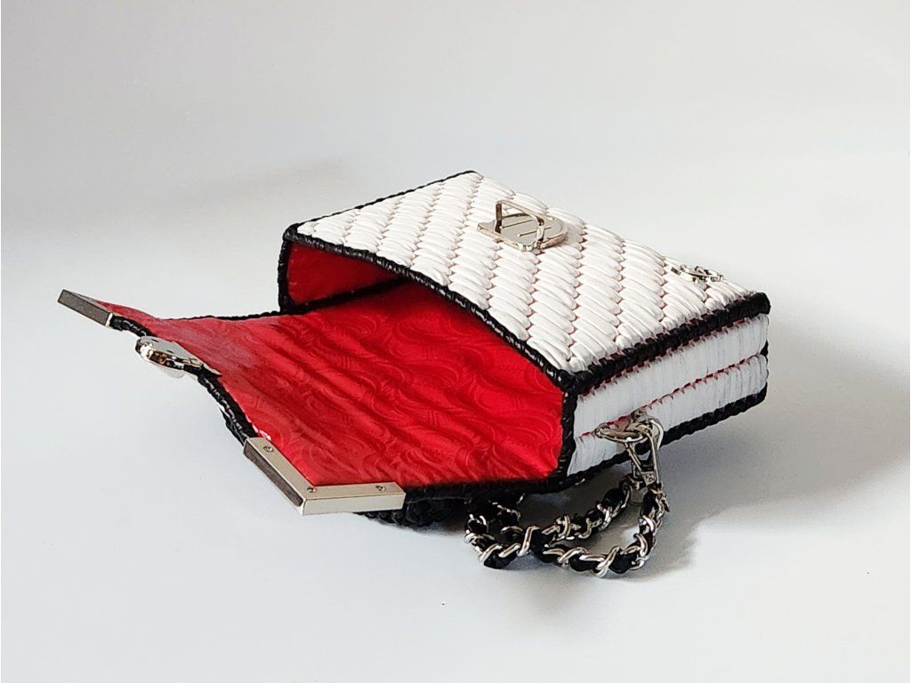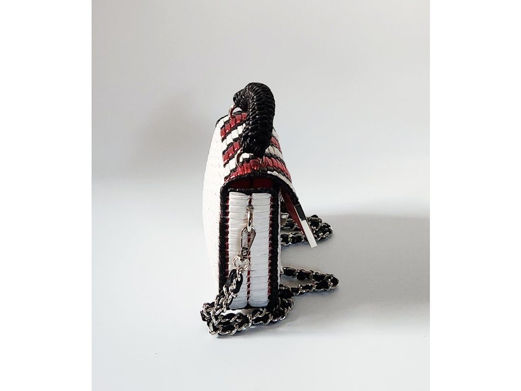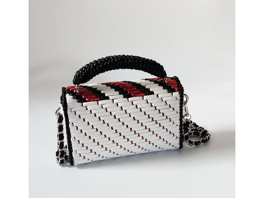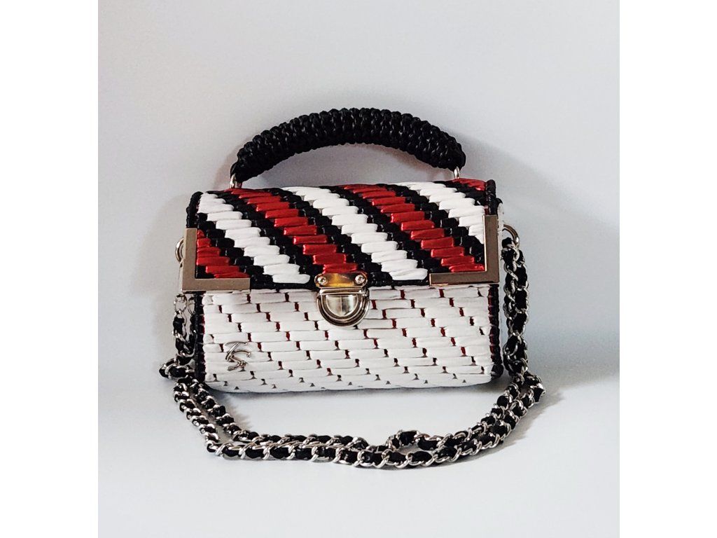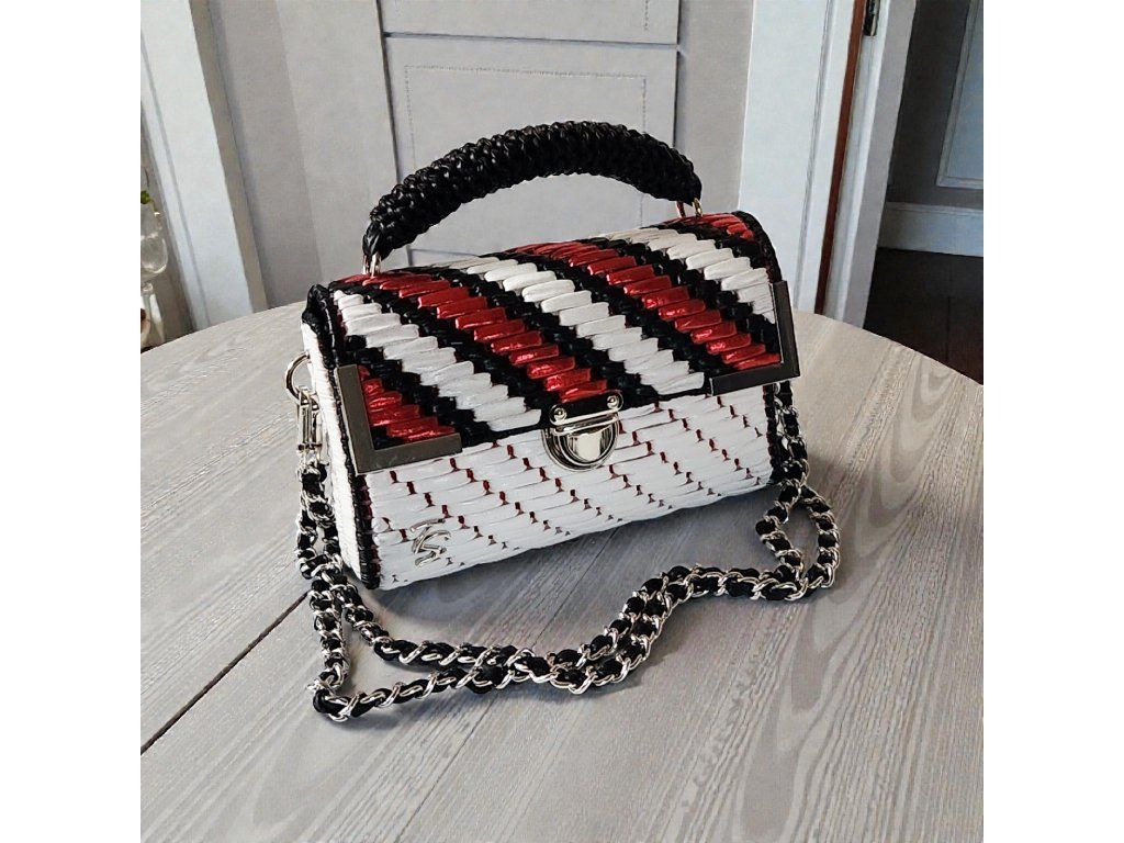 Štýlová mini kabelka Roxy je výrazným doplnkom, ktorý okamžite pritiahne pozornosť. Je ručne vytvorená z kvalitnej bielej priadze s koženkovým efektom, doplnenej o metalickú farebnú priadzu, ktorá jej dodáva moderný a luxusný vzhľad. Elegantný vzor v kontrastných farbách pôsobí sviežo, odvážne a zároveň nadčasovo.