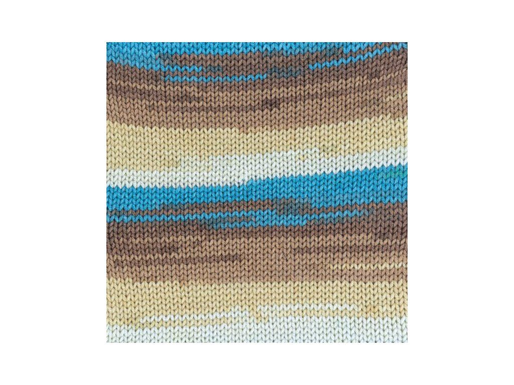 Priadza je charakteristická výraznými farebnými prechodmi, ktoré vytvárajú originálny melírovaný efekt. Aj jednoduchý vzor tak získa zaujímavý vzhľad bez potreby meniť farby počas háčkovania alebo pletenia.