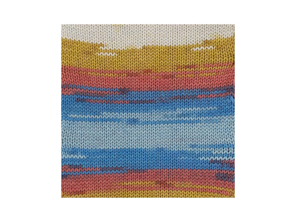 Priadza je charakteristická výraznými farebnými prechodmi, ktoré vytvárajú originálny melírovaný efekt. Aj jednoduchý vzor tak získa zaujímavý vzhľad bez potreby meniť farby počas háčkovania alebo pletenia.
