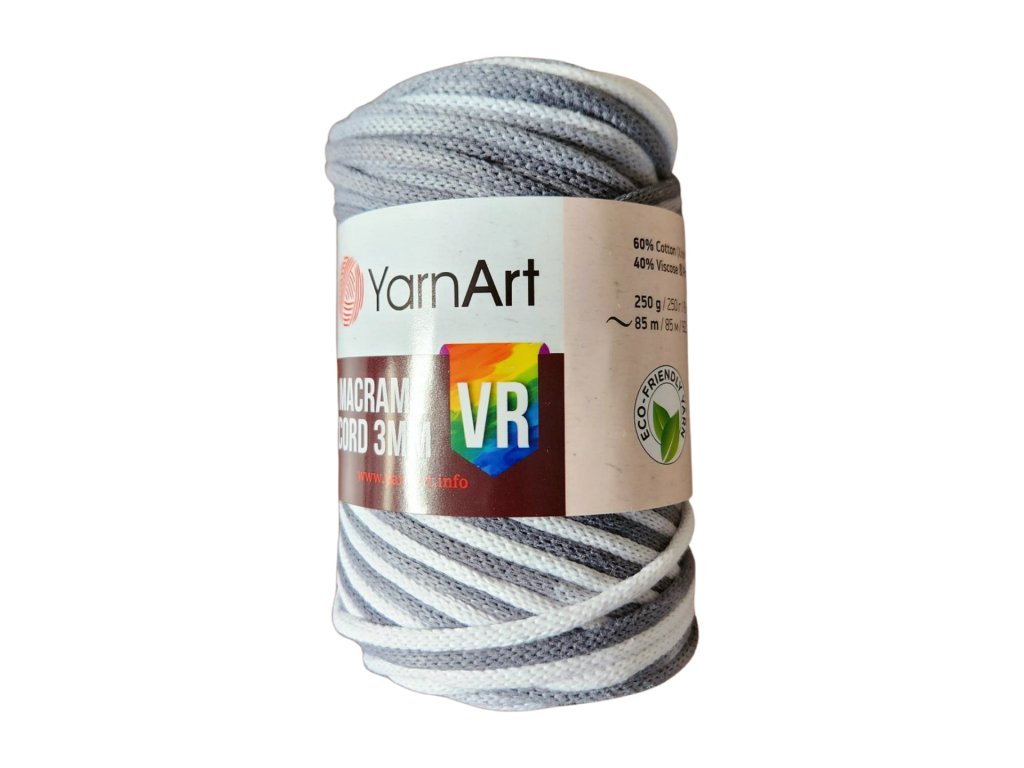 Hrubšia viacfarebná priadza je zložená zo 60% bavlny a 40% viskózy a polyesteru. Klbko má dĺžku 85m a hmotnosť 250g. Priadza je príjemná na dotyk a produkty výborne držia tvar.