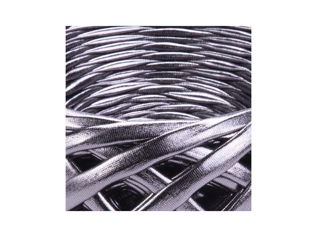 Lesklý špagát s luxusným kovovým vzhľadom je zložený zo 100% polyesteru. Klbko má dĺžku 55m a hmotnosť 180g. Priadza je variantou tričkoviny a je jemná a príjemná na dotyk.